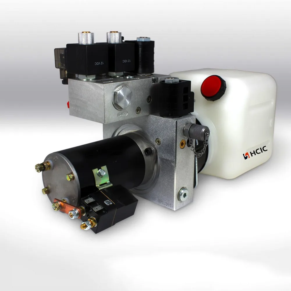 HCIC изработва хидравлични съоръжения за глобални купувачи от години – и HCIC нов12V DC хидравличен захранващ блок е създаден за решаване на реални проблеми на работното място. Има мощност от 1.6KW, работен обем 2.1 CC/R и достига максимално работно налягане от 15Mpa, с 12L хоризонтален квадратен резервоар за масло от желязо и SAE 6#двойнодействащи портове, съчетани с безжично дистанционно с 2 клавиша.